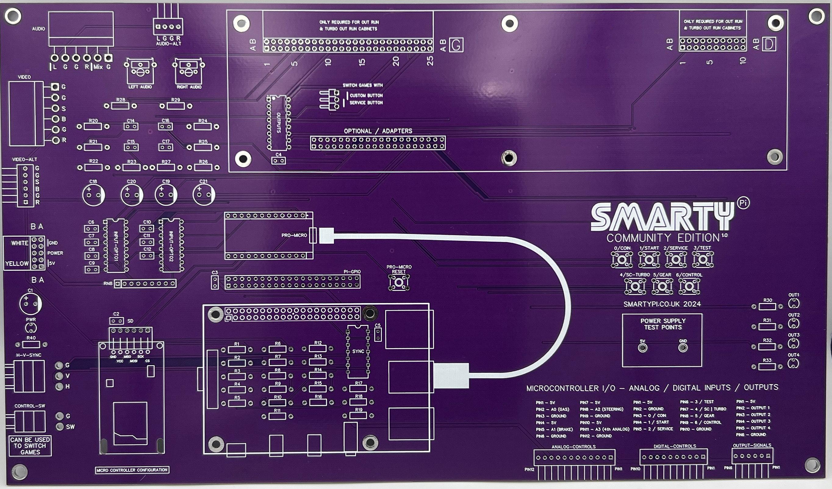SmartyPi CE has been redesigned to be assembled with through-hole components, making it ideal for small-scale builds by arcade hobbyists. A software pack will provides all the functionality of the SE software which has been in production since 2021, but you now have the freedom to modify any aspect of the software or hardware as you see fit.